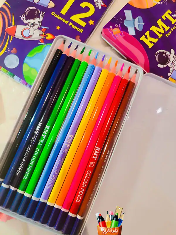 🎨 مداد رنگی 12 رنگ جعبه فلزی KMT | انتخابی شیک برای هدیه و مدرسه